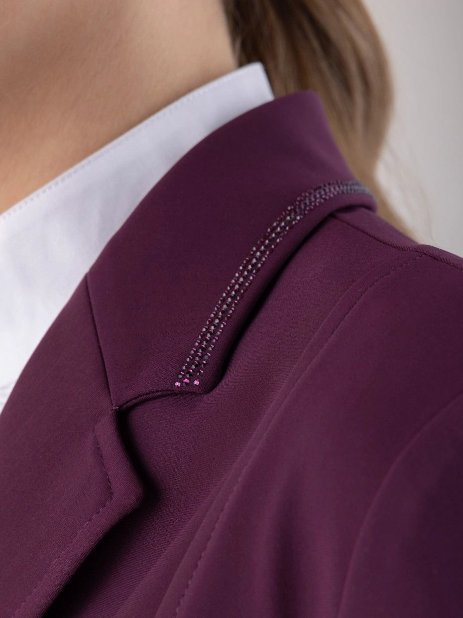 Prachtige wedstrijdjasje afgewerkt met mooi strass steentjes. Kleur Amaranto.